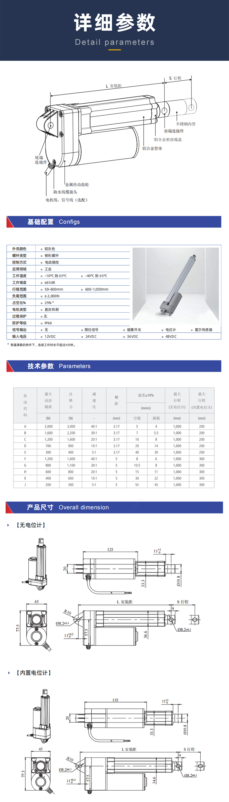 载荷: 2000N, 应用领域:工业, 定制行程: 50-600mm/600-1000mm,